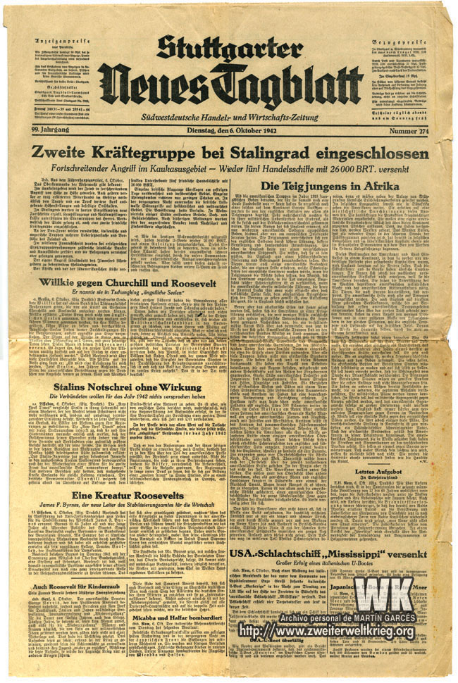 El motivo de este post es recopilar información aparecida en los diarios alemanes de la época, sobre la batalla de Stalingrado.
