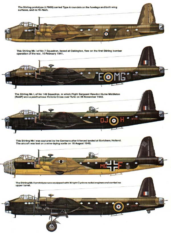 Historial operativoEn julio de 1940, la primera serie de Stirling salió de Rochester; en agosto de 1940 se entregaron los primeros ejemplares al Escuadrón 7 en Leeming, North Yorkshire. Después de un período de trabajo de cuatro meses en el que las tripulaciones se adaptaron a operar el tipo, el Stirling alcanzó el estado operativo en enero de 1941. En la noche del 10 al 11 de febrero de 1941, se realizó la primera misión de combate operativo, usando los primeros tres Stirlings contra los depósitos de combustible en Vlaardingen, cerca de Rotterdam. La misión se consideró que se había desarrollado sin problemas. A fines de 1941 se habían completado más de 150 Stirling y se habían equipado con él tres escuadrones de la RAF. Los Stirling volaron en operaciones de bombardeo diurnos y nocturnos y se descubrió que eran más capaces de hacer frente a los interceptores enemigos mediante el uso de una combinación de cazas y bombarderos, una táctica que se conoció como la ofensiva Circus.