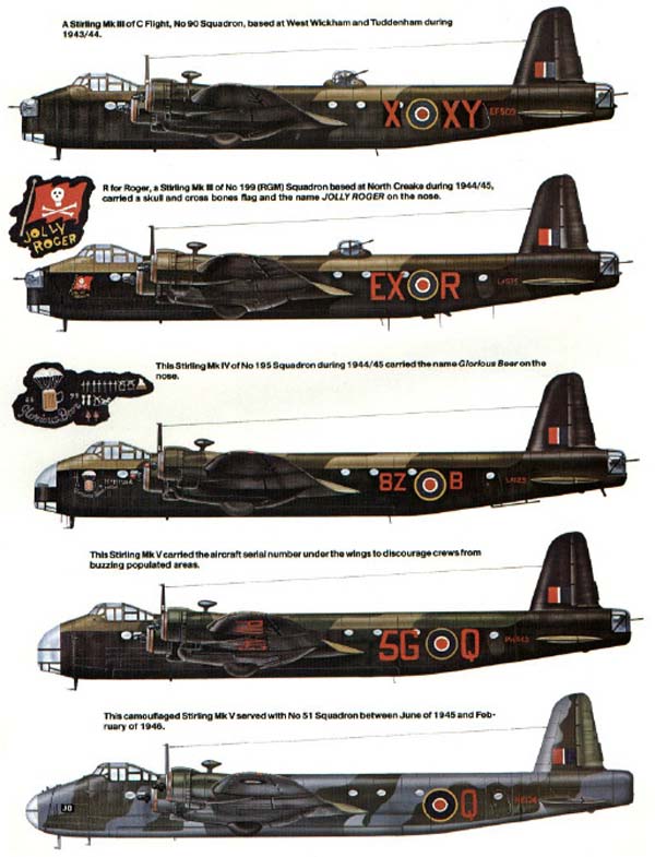 Durante el servicio del avión con el Mando de Bombarderos, los Stirlings realizaron un total de 14.500 salidas, durante las cuales se lanzaron 27.000 toneladas de bombas; 582 aviones se perdieron en acción, mientras que otros 119 fueron desguazados. Para diciembre de 1943, los Stirlings estaban siendo retirados del servicio de primera línea como bombarderos. El avión permaneció en servicio para operaciones de colocación de minas en las cercanías de los puertos alemanes ("Gardening"), contramedidas electrónicas, lanzar espías muy por detrás de las líneas enemigas por la noche y remolcar planeadores.