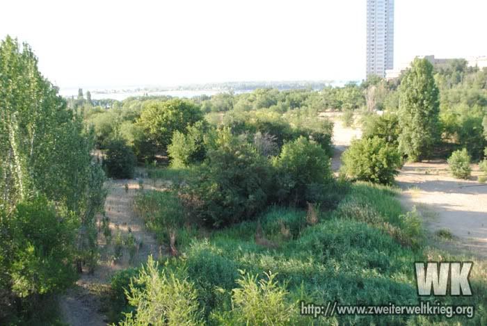 Un poco más arriba, y ya acercándonos a la Estación central, nos topamos con unos jardines bastante descuidados, que otrora fueron testigos de la última resistencia de la bolsa en el centro de Stalingrado donde se hallaba Paulus con los restos del VI Ejército. Aquí es donde se libraron los últimos combates en el centro de la ciudad.