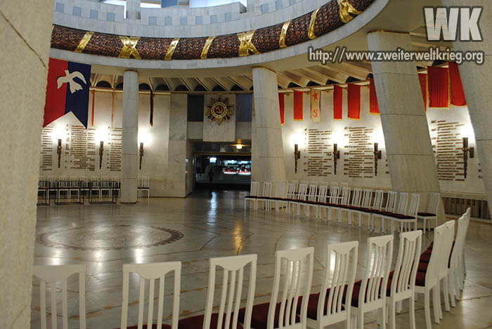 Partiendo desde el muelle y en dirección oeste, subiendo por la Avenida de los Héroes Caídos, nos encontramos con un pequeño memorial en honor a los héroes del Ejército Rojo.