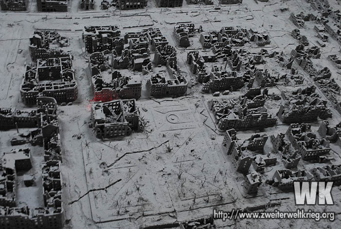 A mano derecha, siguiendo en dirección a la estación central, se encuentran los restos de los almacenes Univermag, último cuartel general del VI Ejército donde Paulus capituló, pero ya nos centraremos en este lugar de forma independiente, pues hay mucho material fotográfico que aportar.