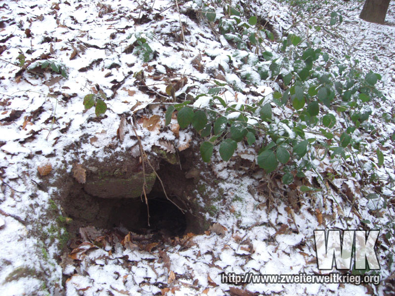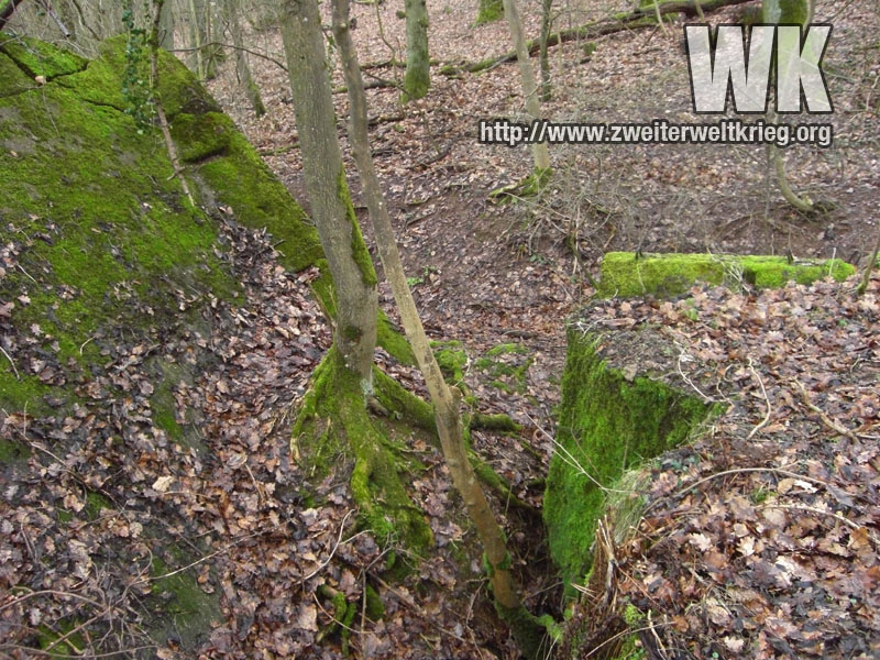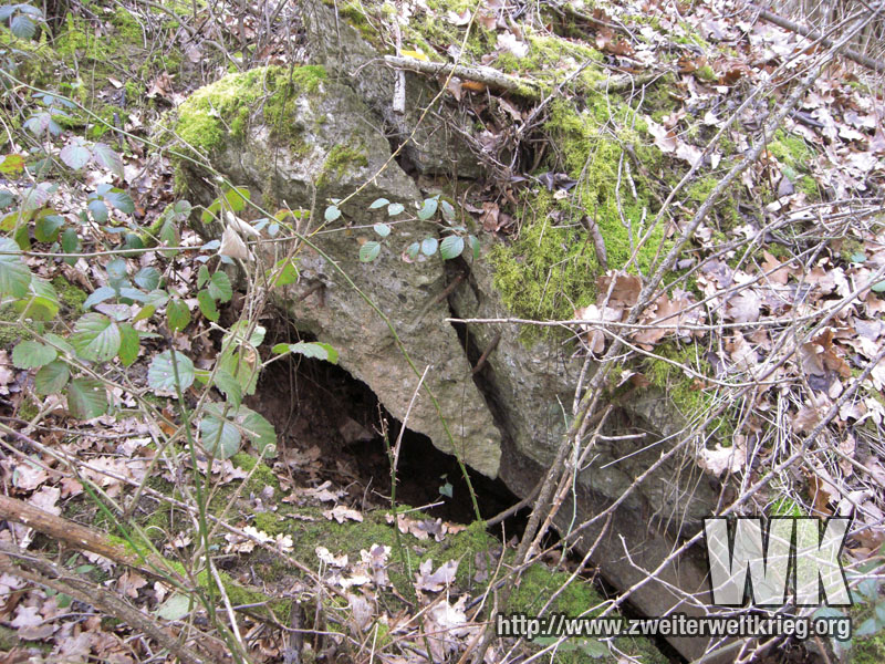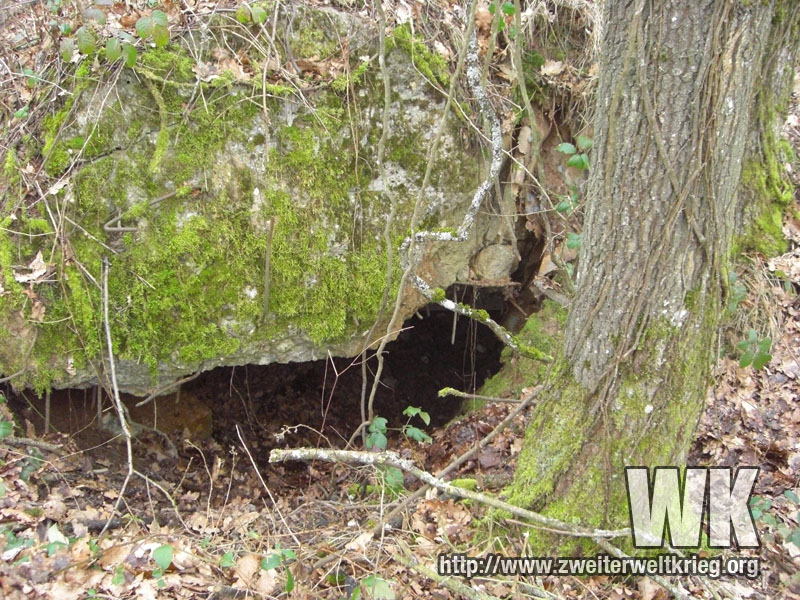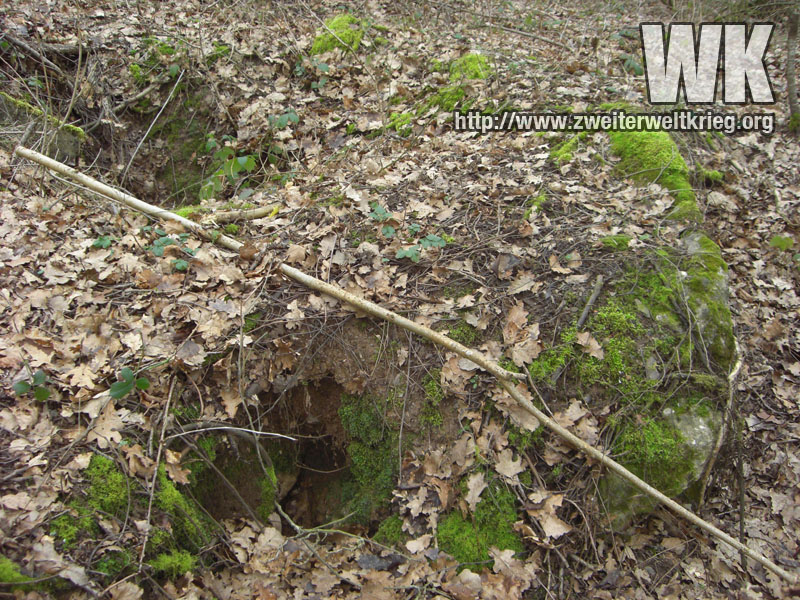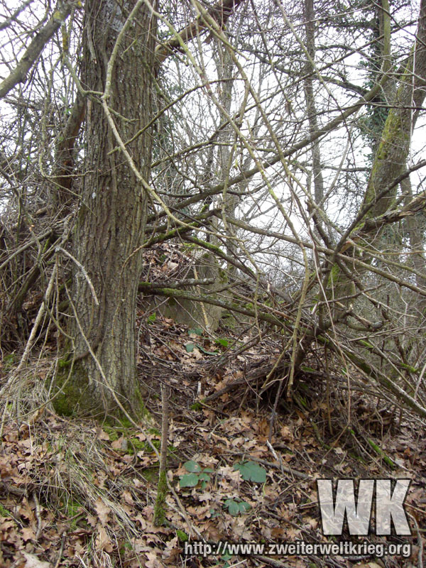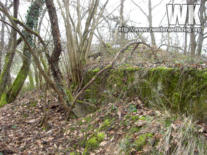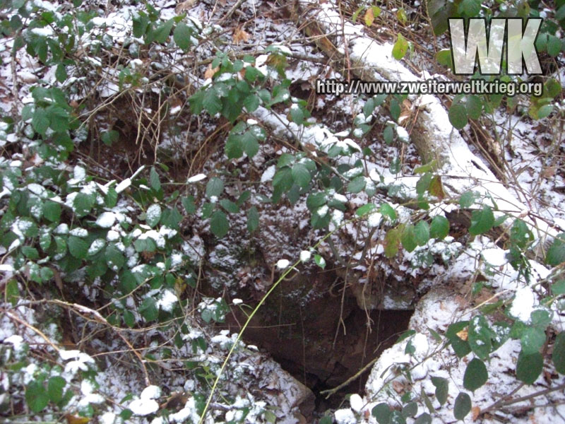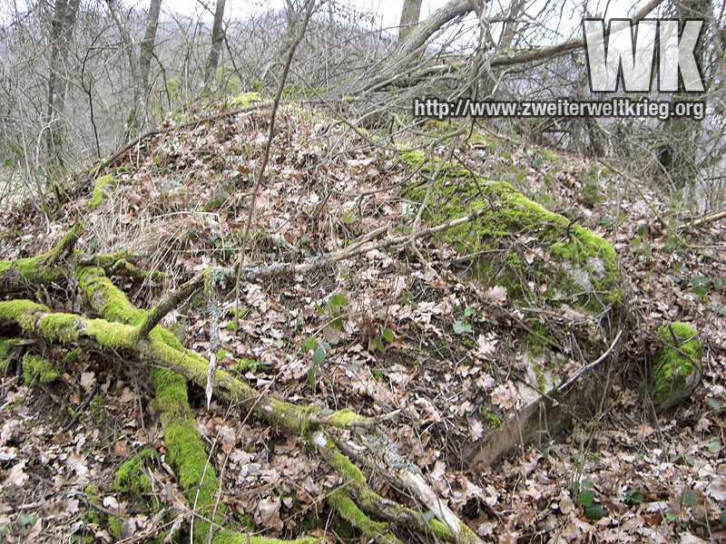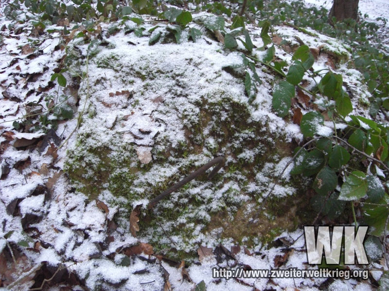 Antes de empezar con los verdaderos monstruos, os dejo unas fotos de otro bunker de los más pequeños. Desconocía su emplazamiento, y despés de visitar el puesto de observación de artillería de Filzen que aporté anteriormente, a la derecha del camino y volviendo a casa me fijé en una pequeña protuberancia, que resultó ser los restos de un bunker, tras comprobar la existencia de hormigón.