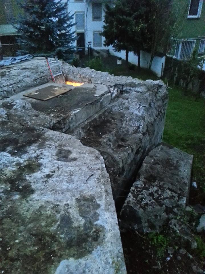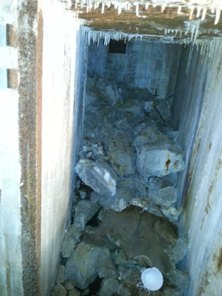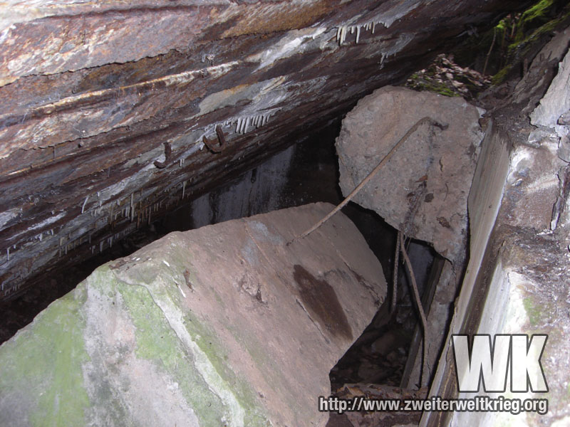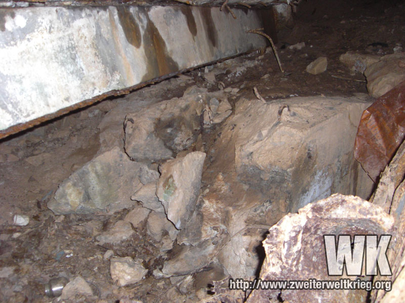 Como de costumbre, al meter la cámara dentro de uno de los agujeros, puede observarse el interior del bunker en ruinas. Este, al igual que la mayoría, fue volado.