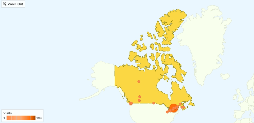 256 conexiones en el último mes, que se reparten principalmente en Ottawa (193), Victoria (6) y Calgary (4).