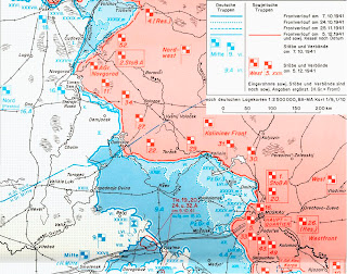 En diciembre de 1941 unidades del Heeresgruppe Mitte (Generalfeldmarschall Fedor von Bock) llegaron a ubicarse a unos 42kms de Moscú. El 5 de diciembre de 1941, en un crudo invierno de hasta -40º, la STAVKA lanza una contraofensiva en un frente de 250kms y movilizando más de 100 divisiones. El ímpetu del ataque comenzó a decaer desde la navidad de 1941, y ambos bandos se reorganizaron, estabilizando el frente, pero dejando algunas cuñas como la de Rzhev-Vyazma, que seguían amenazando a la capital soviética desde el este-noroeste.
