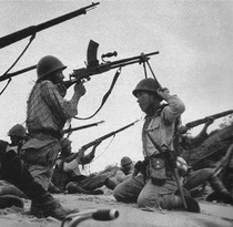 Tropas de la 2ª División en combate, armados con fusiles Arisaka y una ametralladora ligera Tipo 96 (Xuzhou, China, 1938)
