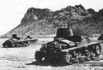 Un tanque de 23 litros cuelga precariamente en la parte trasera de un M13/40. África del Norte, 1940