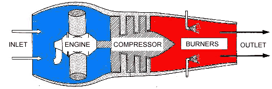En el Caproni Campini N l se utilizó de una manera ingeniosa para ser propulsado; El motor de pistón dentro del fuselaje condujo un ventilador canalizado y el combustible fue encendido para que hubiera mas potencia y el aire comprimido fuera emitido a través del tubo de escape.