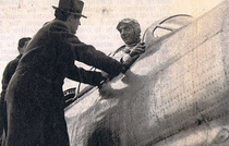 Giovanni Battista Caproni saluda a Mario de Bernardi en la cabina del Campini-Caproni n. 1 NC. 4849 MM.487 antes del vuelo Milán-Roma.
