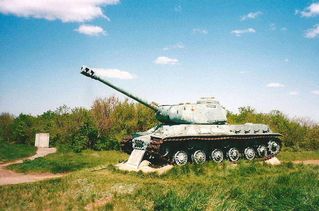Se dice que el blindado es un IS-2, pero si no me equivoco se empezó a fabricar en el 43, y me parece extraño que se colocase aquí en memoria del 1. Ejército blindado, que se enfrentó al 6.º Ejército en estas posiciones en el 42.