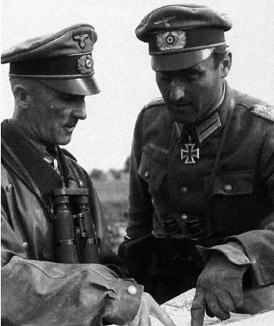 El coronel Otto-Ernst Remer, comandante del WachtsBatallion de la Grossdeutschland Guard en Berlín, que frustró el golpe de Estado contra Hitler el 20 de julio de 1944. Tras esta fecha, Hitler decretó que la Wehrmacht debía adoptar el saludo nazi, que Remer hace aquí en un desfile. Viste el uniforme de servicio de oficial M1935; sus condecoraciones son: el brazalete M1942 de tercera generación «Großdeutschland», la Cruz de Caballero con Hojas de Roble, la Cruz Alemana en Oro, la Cruz de Hierro de 1.ª Clase, la Insignia de Combate Cuerpo a Cuerpo, la Insignia de Herido de Plata y la Insignia Allgemeines Sturmabzeichen