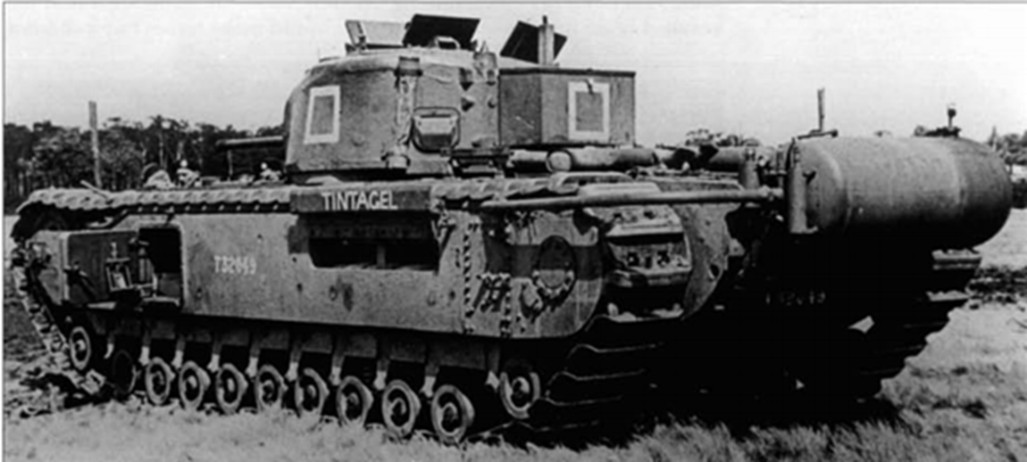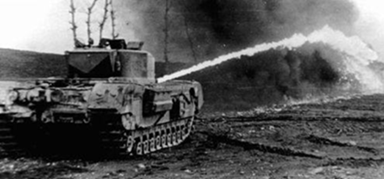 Durante las primeras etapas de la Segunda Guerra Mundial, los británicos consideraron el tanque lanzallamas un arma crucial para derrotar las fortificaciones previstas de una Europa que, una vez más, se vería atrapada en una guerra estancada. Antes de la adopción del Churchill, se habían probado otros vehículos con equipos lanzallamas. Estos incluían el Universal Carrier, el Valentine e incluso camiones sin blindaje.