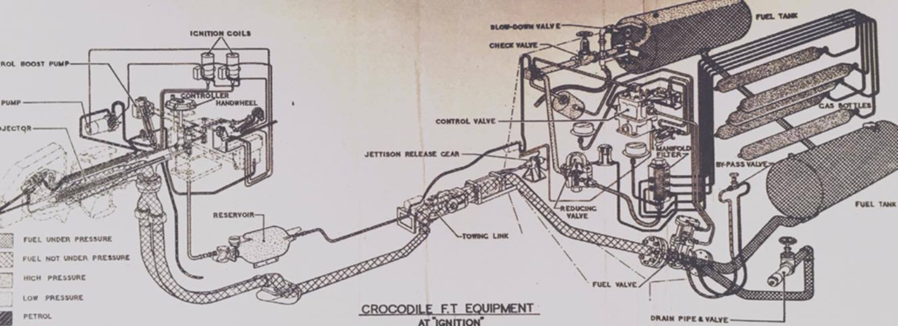 El Churchill Crocodile fue uno de los famosos “Hobart’s Funnies”, llamado, por supuesto, en honor al Mayor General Percy C. S. Hobart. Junto con el AVRE armado con morteros Petardos, el desarrollo del Crocodile fue una tarea altamente confidencial. Tanto es así que se hicieron grandes esfuerzos para destruir Crocodile inutilizados en el campo de batalla para evitar su captura.