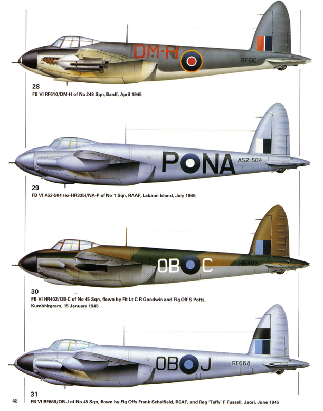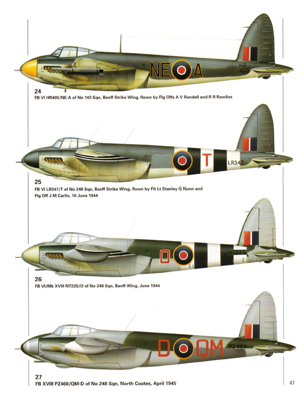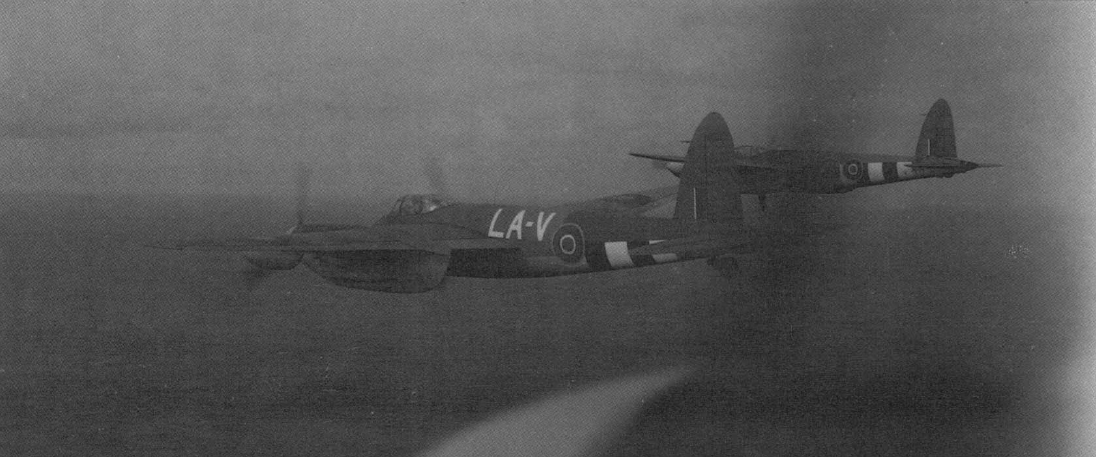 17. Mosquito FB VI MM404/SB-T, 464º Escuadrón, RAAF, Ala 140, 2ª TAF, pilotado por el lider de escuadrón Ian McRitchie, RAAF, y el teniente de vuelo "Sammy" Sampson, 18 de febrero de 1944.