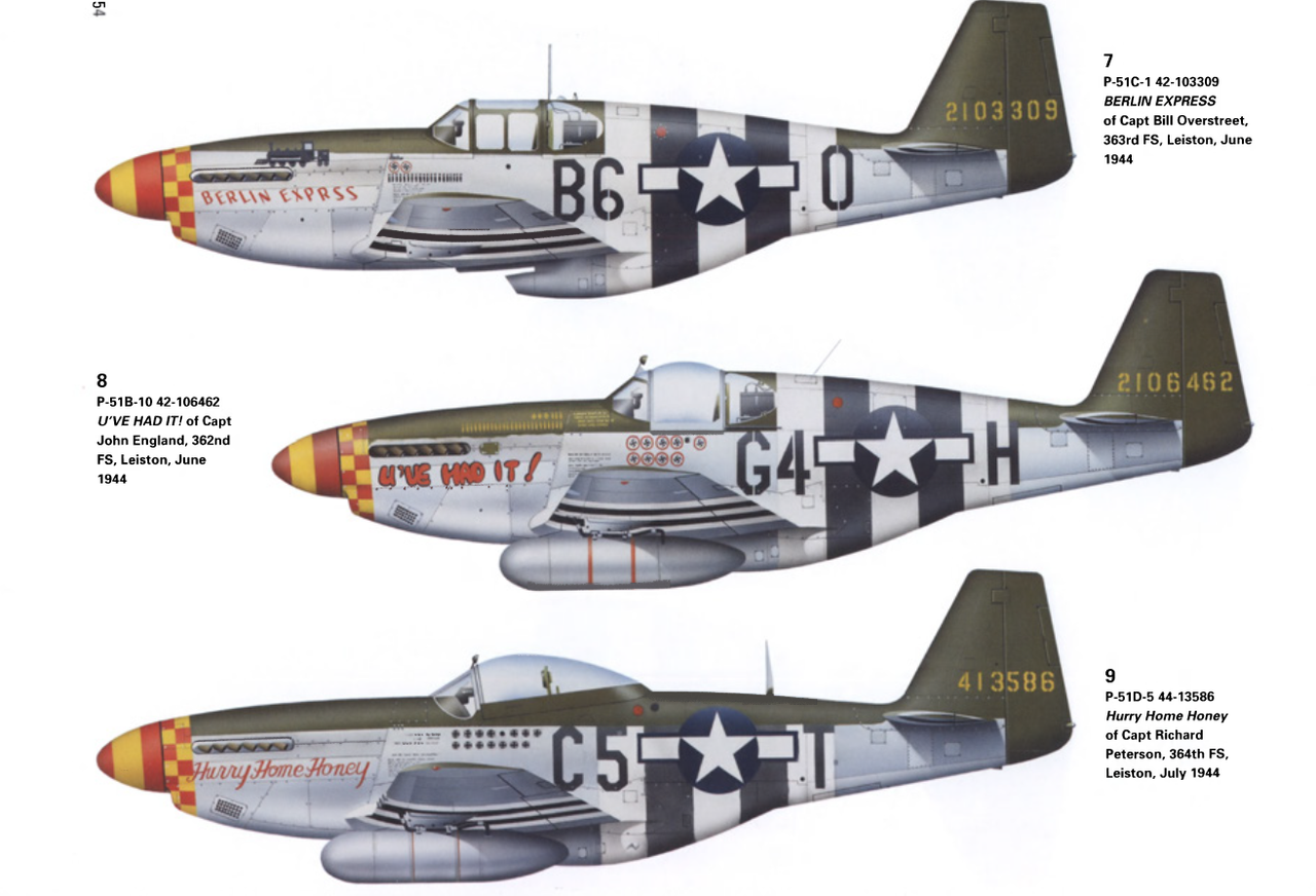 9 P-51D-5 44-13586 Hurry Home Honey del Capitán Richard Peterson, 364.º Regimiento de Escuadrones, Leiston, julio de 1944