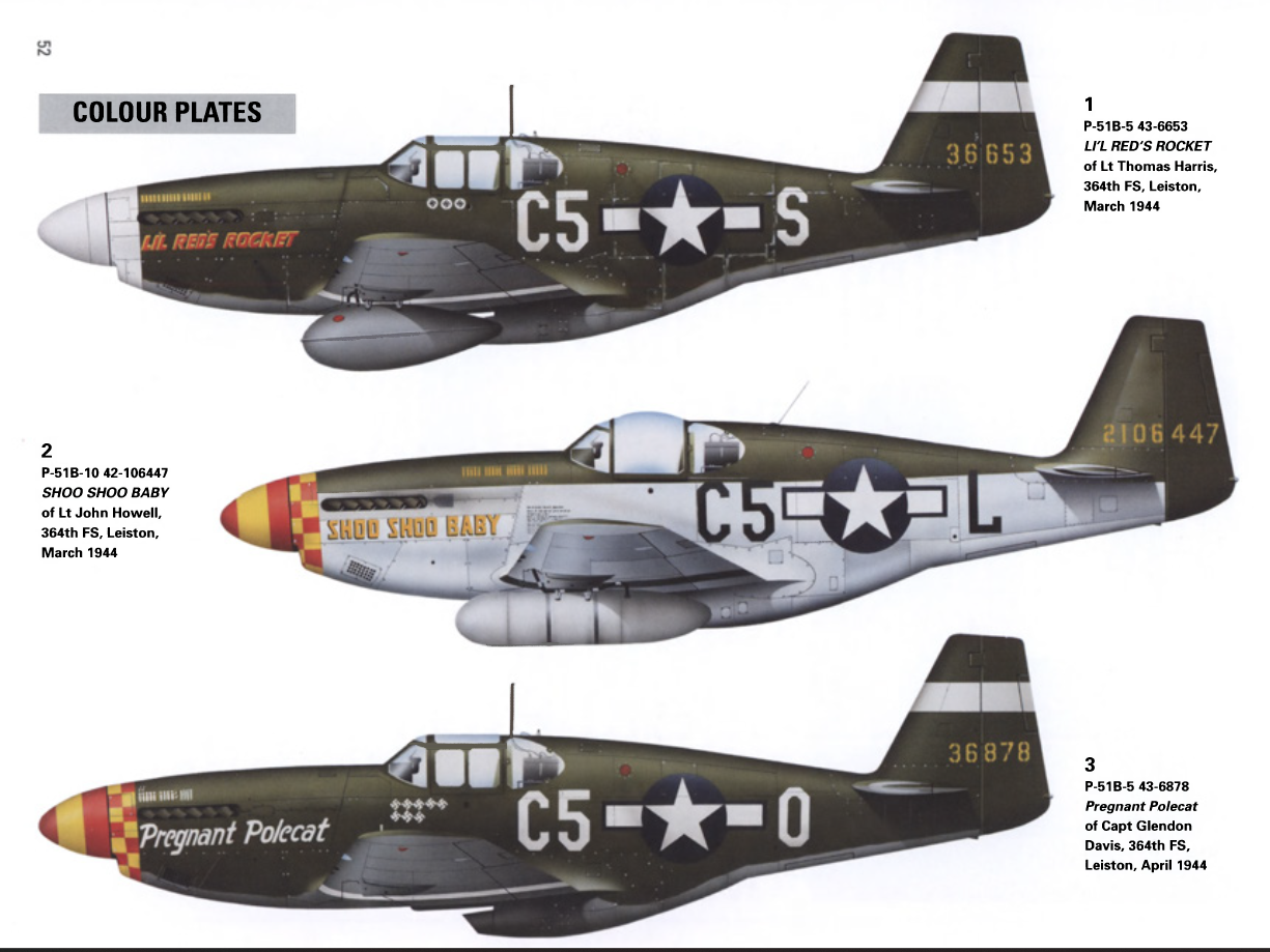 1 P-51B-5 43-6653 RED'S ROCKET del teniente Thomas Harris, 364º Escuadrón, Leiston, marzo de 1944