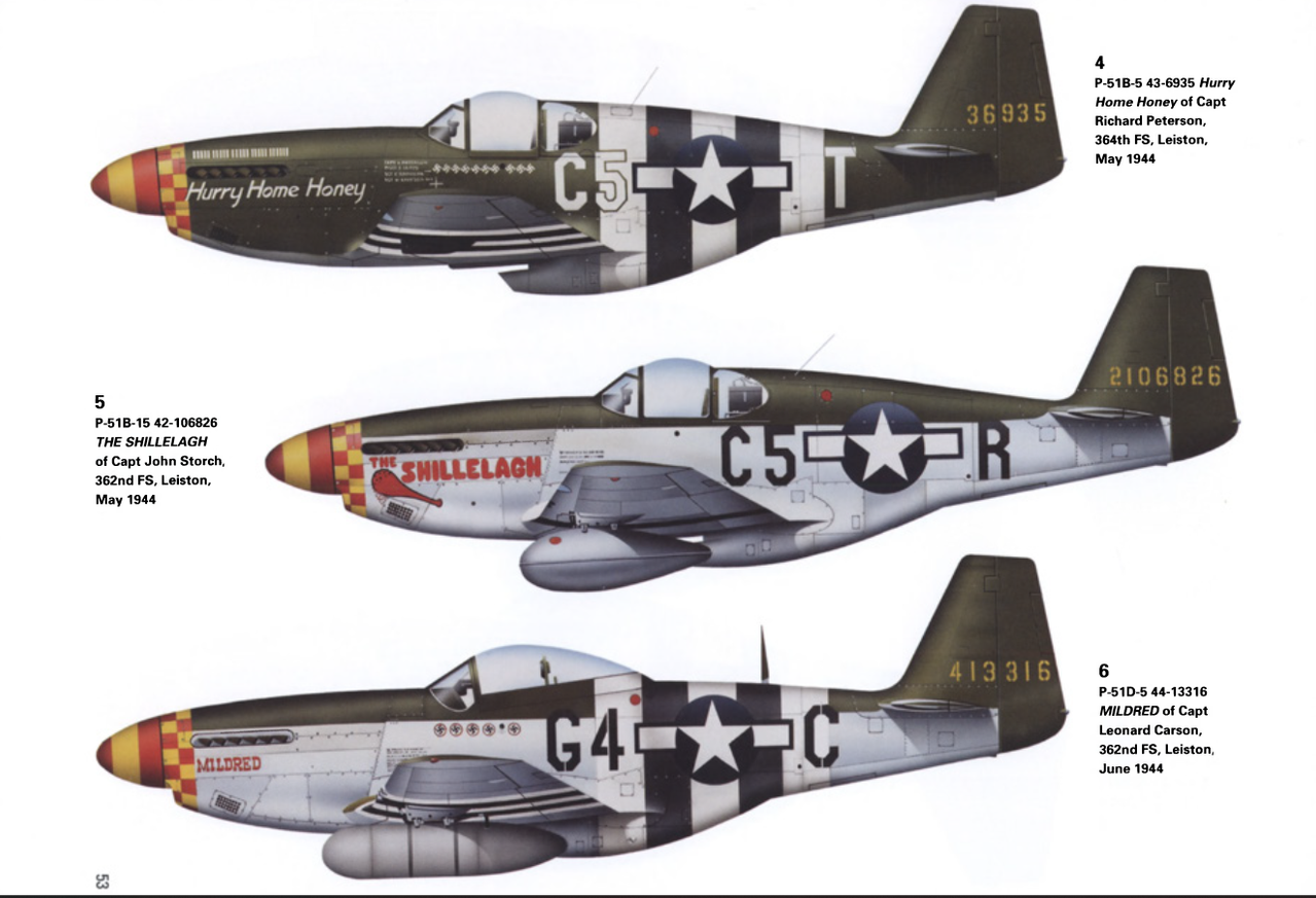 6 P-51D-5 44-13316 MILDRED del capitán Leonard Carson, 362.º Grupo de Fuerzas Armadas, Leiston, junio de 1944