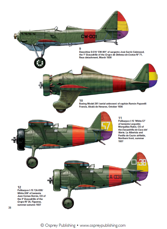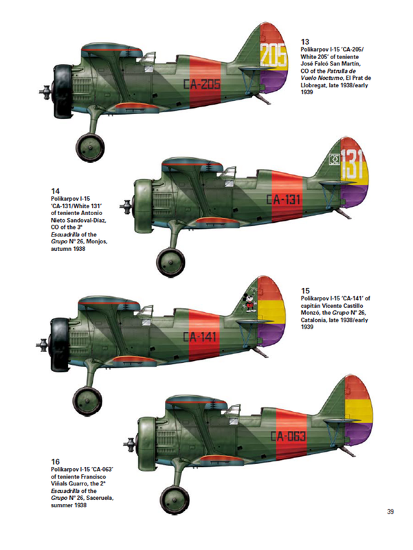 Los Polikarpov I-15 de ala de gaviota pertenecían a la serie «CA-», mientras que los I-15bis de ala plana pertenecían a la serie «CC-». En muchos aviones (como en este caso) solo se aplicaba el númeroben la aleta o el timón. Algunos cazas, como el «Blanco 57», tenían las cubiertas del motor pintadas de negro.