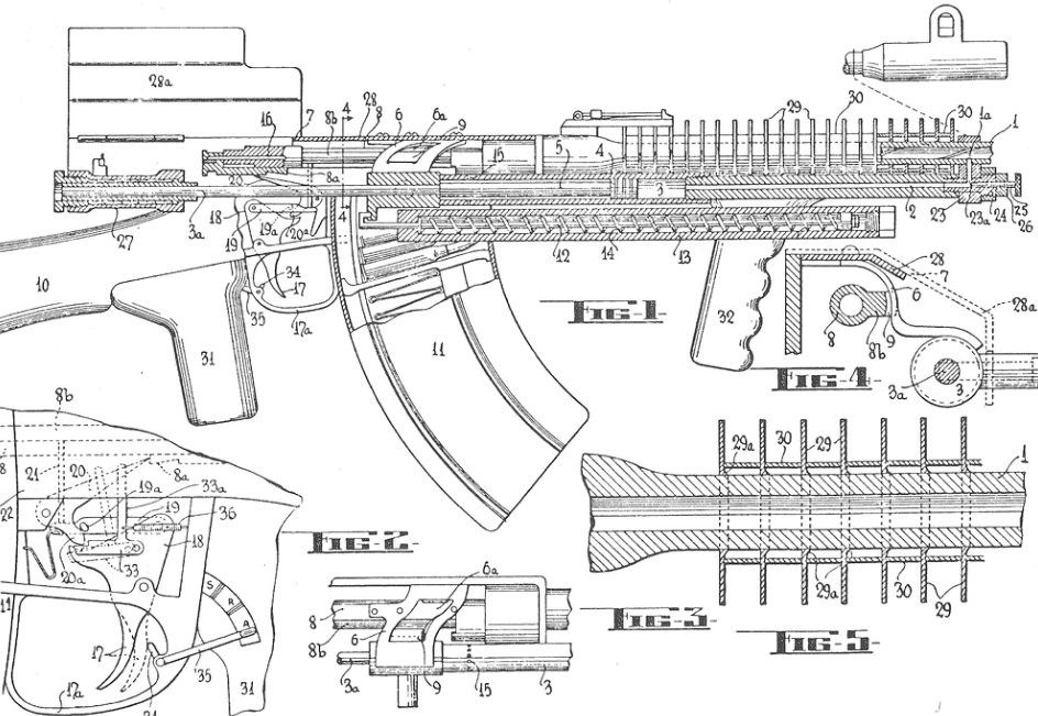 Esquema del interior de un fusil automático Charlton.