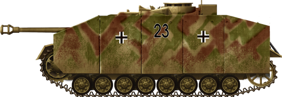 En las últimas etapas de la guerra, las divisiones de infantería alemanas se complementaron con un Panzer Jäger Abteilung que contenía una compañía de cañones remolcados PaK 40 de 7,5 cm (o versiones autopropulsadas, si las había) y una compañía de 14 vehículos de asalto. A medida que se disponía de suficientes StuG IV, estos también se asignaron a las divisiones de infantería. Durante 1944, el número de vehículos de asalto se redujo a tan solo 10.