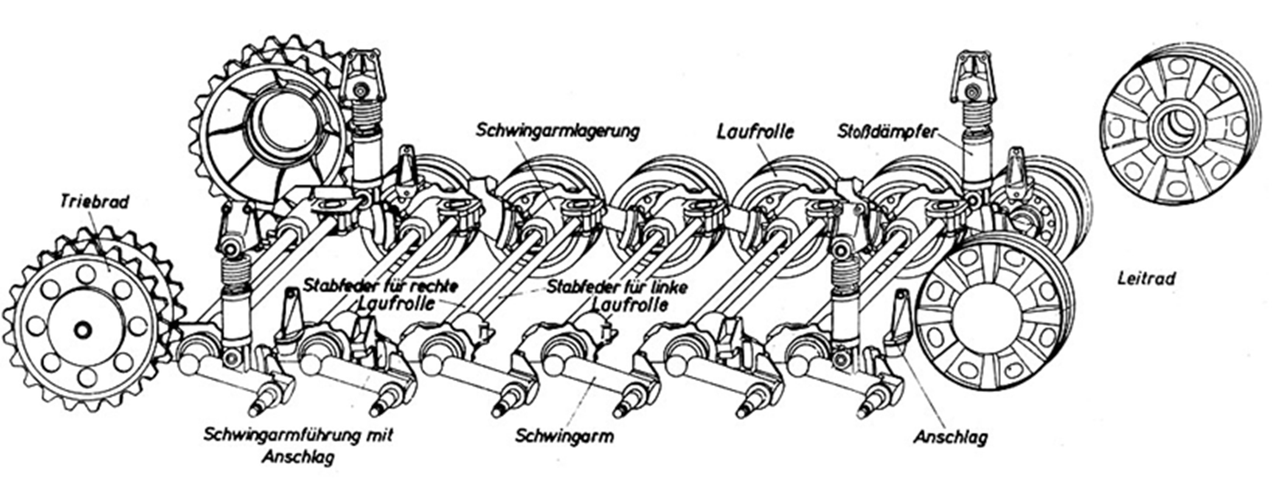 Ilustración de la disposición de la suspensión del Panzer III.
